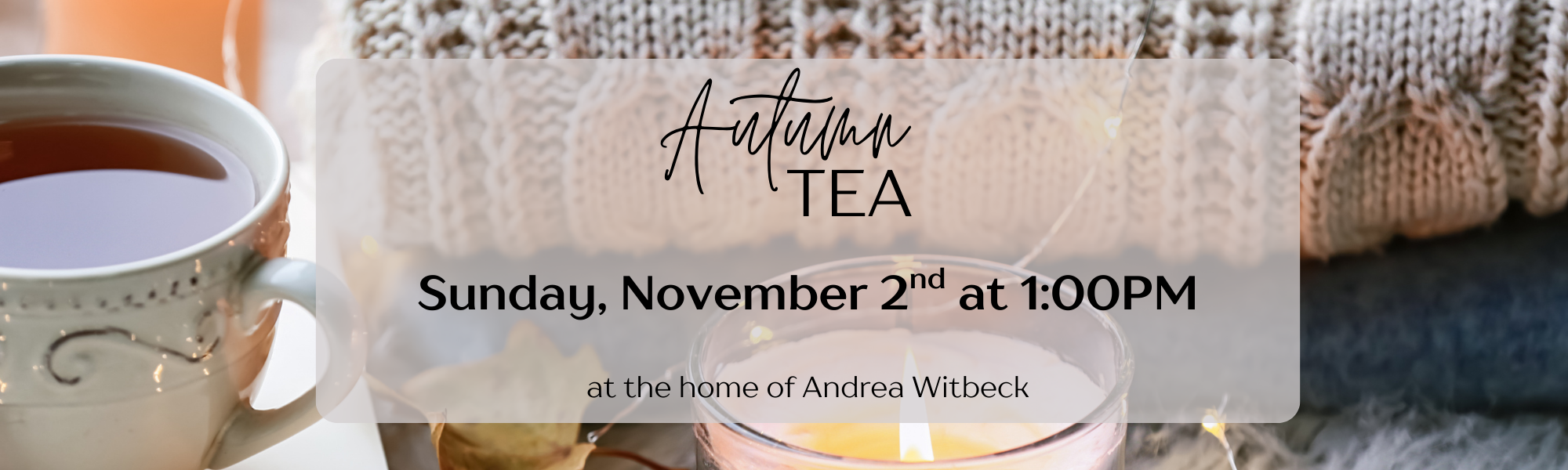 Join us on Sunday, November 2nd for an Autumn Tea! Please RSVP and bring your own teacup. If you don't have one, we will have extras...Let's get cozy!